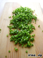 | мелко покрошить зелёный лук. Овощи и яйцо смешать. |