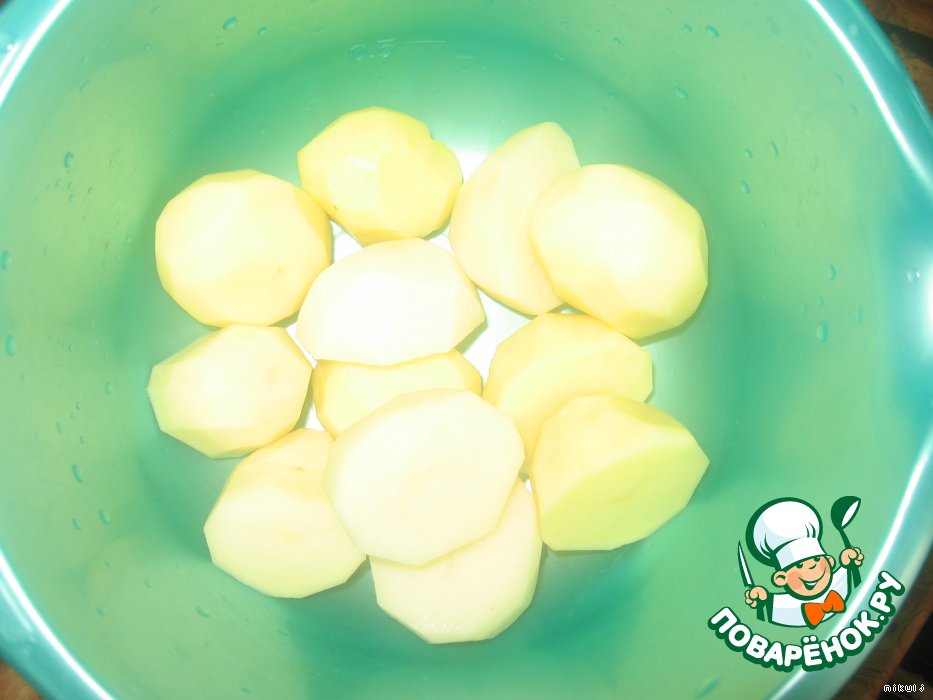 | Через час в бульон добавляем картофель целиком, варим его до готовности. Вынимаем, измельчаем в блендере или толкушкой, добавляем к нему 2 сырых взбитых яйца, жареные лук с морковкой и еще раз хорошо взбиваем до однородной массы.